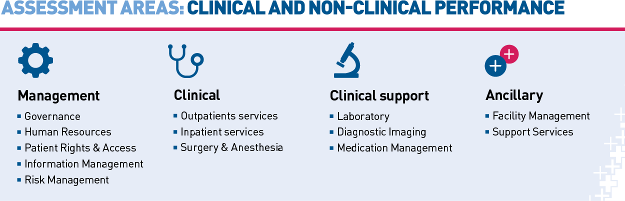 Our standards are accredited by the International Society for Quality in Health Care (ISQua) External Evaluation Association (EEA). They help to evaluate a healthcare facility’s performance on effective, safe, and people-centered care, and focus on issues with the highest impact on these areas. In this way, prompt, targeted, and effective action can be taken to address them.